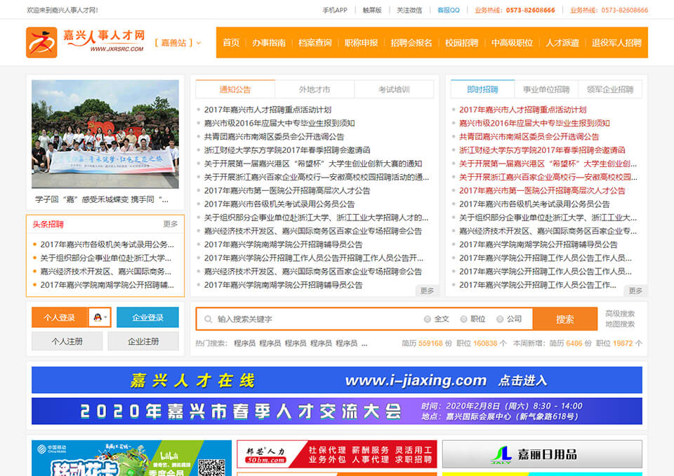 公司自主開發(fā)和運(yùn)營的嘉興人才網(wǎng)( www.573job.com )和舟山人才網(wǎng)( www.93job.com )等平臺,經(jīng)過多年發(fā)展已經(jīng)成為當(dāng)?shù)刈罹哂绊懥Α⒆罹邫?quán)威性、最具招聘效果的人才網(wǎng)站之一。